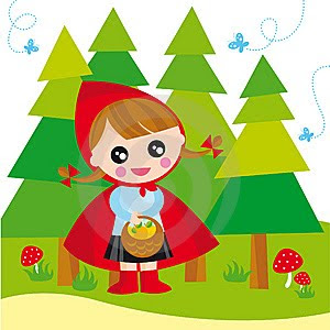 NOW : Little Red Riding-Hood goes off with food to see her grandmother. A wolf in the forest tricks her into taking a longer path while the wolf goes to the house first, swallows the grandmother, and pretends to be her when Red arrives. He swallows Red , and the wolf also eat the hunters and wood-choppers.
